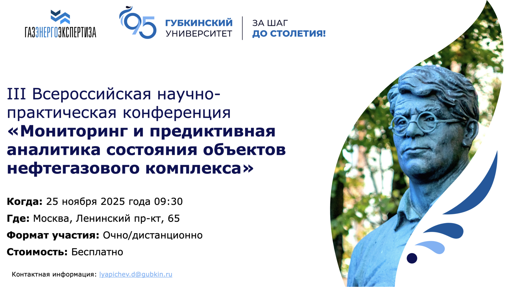 Для участия в качестве слушателя необходимо в срок до 20 ноября 2025 года необходимо направить запрос с указанием контактных данных по адресу по адресу lyapichev.d@gubkin.ru.